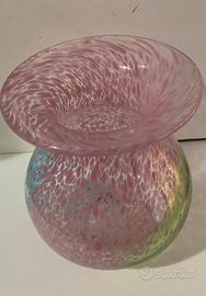 Vaso in vetro maculato rosa con chiazze di colore, firmato Kosta Boda Design disegnato da Ulrika Hydman-Valien, “Collezione dell'artista" alto cm.14 circa.