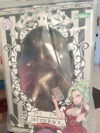 Con il "Manuale per i recentemente defunti" in mano, Betelgeuse è pronta a farti diventare il suo partner nell'aldilà! Il vivace smoking indossato nel film Beetlejuice nella famigerata scena del matrimonio in cui Beetlejuice può essere visto mentre cerca di costringere Lydia a sposarlo è stato arrangiato da Shunya Yamashita in questa nuovissima interpretazione della statua originale Beetlejuice BISHOUJO. Alcune parti di questa statua sono state scolpite di recente per questa variante in edizione limitata del fantasma dispettoso. I collant bianchi sono stati dipinti con vernice perlata, rendendo i collant luminosi e scintillanti sotto la luce e aggiungendo un nuovo fascino alla statua nel suo complesso. Figure prodotta da Kotobukiya EAN 4934054018345, scala 1/7 , altezza mm. 215. Prodotto nuovo nella suo box a finestra avvolto ancota nel cellophan con cui è pervenuto. Cod. i. YY"&=