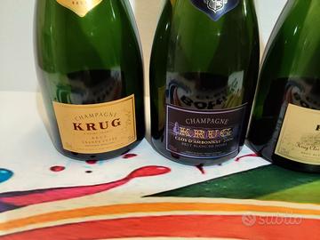 LOTTO DI 4 BOTTIGLIE VUOTE DI CHAMPAGNE KRUG DIVERSE DA COLLEZIONE MOLTE ALTRE BOTTIGLIE DI VARI CHAMPAGNE E DISTILLATI A DISPOSIZIONE SE CERCATE QUALCHE BOTTIGLIA PARTICOLARE NON ESITATE A CHIEDERE