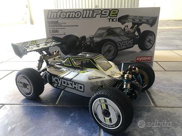 Vendo stupenda Kyosho MP9 e TKI RTR mai utilizzata fuori, nuovissima, provata solo in casa per costatare la sua perfetta funzionalità. Personalizzata con vari accessori tipo molle ammortizzatori, aggiunto doppio satellite e planetario nei differenziali, boccole perni bracci, completa di batteria Lipo 4S Gens ACE 6750 mAh e treno di gomme Aka con cerchi giallo fluo nuovi. Caratteristiche principali : la MP9e TKI Readyset è completa di radio KT331 e ricevente in 2.4Ghz ed è completa di motore e regolatore Team Orion NEON8. Il motore è un 2100Kv e il variatore è un R8, in versione waterproof quindi totalmente resistente all'acqua. Il modello è tutto interamente assemblato e pronto all uso, utilizza il servo comando KS-5031 -09MW. Questa MP9e TKI Readyset monta di serie gli ammortizzatori Big Bore in alluminio, che permette di adattare perfettamente la macchina alle caratteristiche del terreno in cui si sta guidando. I supporti ammortizzatori, gli spessori degli ammortizzatori e il telaio , sono interamente realizzati in una speciale lega di alluminio di altissima qualita'.