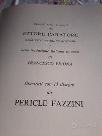 Volume di grande pregio , straordinaria edizione dell'Eneide , in pelle, illustrata da Pericle Fazzini. Episodi scelti e curati da Ettore Paratore, traduzione italiana in versi di Francesco Vivona. Delfino Edizioni D'Arte.