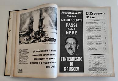 Straordinario volume rilegato originale di L'Espresso – “Espresso Mese”, comprendente l’annata completa marzo 1960 – marzo 1961, nel pieno del boom economico italiano. Non si tratta di una ristampa, ma di una raccolta autentica d’epoca, testimonianza diretta di uno dei momenti più cruciali del giornalismo e della società italiana del dopoguerra. Il periodo è quello della direzione di Arrigo Benedetti, figura centrale nella costruzione del giornalismo moderno, con il contributo e l’influenza di Eugenio Scalfari, destinato a diventare uno dei più importanti intellettuali italiani. All’interno del volume si trovano: reportage e inchieste originali su politica, economia e costume testimonianze dirette dell’Italia del miracolo economico firme e contenuti culturali di altissimo livello riferimenti al mondo del cinema e della cultura straordinarie pubblicità d’epoca, oggi oggetto di studio e collezionismo Condizioni: buone per l’età (oltre 65 anni) legatura solida e integra pagine complete naturali segni del tempo, che ne attestano autenticità e fascino Dimensioni importanti: 34 x 26 x 6 cm Peso: circa 3,5 kg → volume consistente, non comune Oggetto di grande interesse per: collezionisti di editoria storica appassionati di giornalismo italiano studiosi del Novecento arredamento vintage di prestigio (coffee table book) tag: libri rari, vintage anni 60, collezionismo, giornalismo italiano, espresso, riviste d’epoca, editoria storica, boom economico, cultura italiana, design vintage