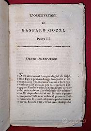 Scelta enciclopedica di opere italiane tradotte in pretto toscano in prosa ed in verso. L'osservatore di Gasparo Gozzi - Napoli R. Marotta e Vanspandoch - 1831. Copertina flessibile 9x14 cm ca./pp.188 integro ben compatto lievi segni del tempo. Astenersi perditempo massima serietà, grazie.