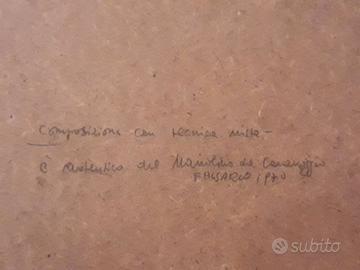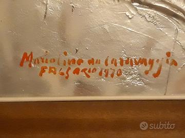 Mariolino da Caravaggio, pseudonimo di Mariolino Feraboli (Caravaggio, 1923 – 1992), è stato un pittore italiano noto con il soprannome di "il Falsario". È celebre per la produzione di dipinti, con tecniche miste, spesso di piccole dimensioni, realizzati su supporti non convenzionali, tra cui lastre metalliche come argento o rame. (cit,) Il suo soprannome "il Falsario" deriva dalla sua abilità nel reinterpretare stili classici, ma le sue opere sono autentiche creazioni del XX secolo. I suoi lavori includono paesaggi invernali, vedute e scene sacre, spesso dotati di autentica dell'artista sul retro. Dimensioni: h. 52,5 x 42,5 peso 2,4 Kg