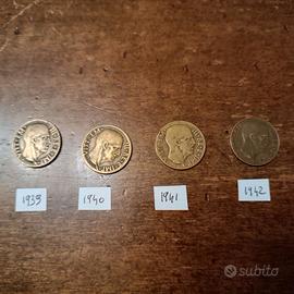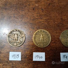 L70 - 4 monete 5 cent. Regno Italia bronzo "Aquila" Impero - anni differenti come da foto - spedizione solo in Italia