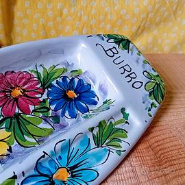 Piatto porta burro/ antipasti decorato a mano anni '60. cm 25 x 13 3 ,