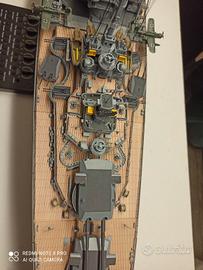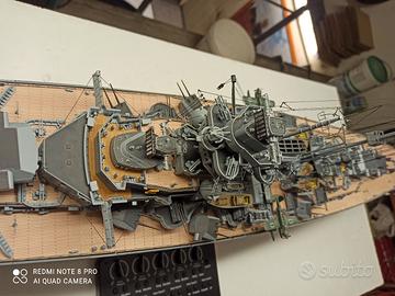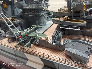 La corazzata Bismarck in scala 1:200 appena costruita in perfette condizioni. Le caratteristiche: Lunghezza :1252 mm Larghezza: 180 mm Altezza: 300mm(430 mm con piedistallo) Scafo : metallico Ponti e sovrastrutture : plastica, metallo Battaglione : metallo Grazie al telecomando in dotazione il modello della Bismarck prendere vita!!! È possibile controllare un grande numero di funzioni e attivare movimenti realistici ed effetti luminosi e sonori. 140 fascicoli con istruzioni di montaggio accompagnano al drammatico destino della più famosa corazzata tedesca da guerra al mare. Consegna solo a mano. Zona Roma Monti Tiburtini. Andrea