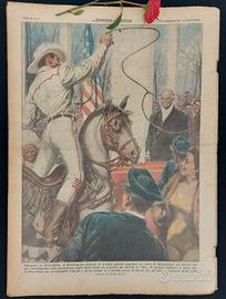 La Domenica del Corriere Anno 55 Nr.5 del 1 febbraio 1953 Supplemento settimanale illustrato del nuovo CORRIERE DELLA SERA Testo in lingua italiana, copertina morbida. Rivista originale completa, presenti sovra copertine Pagina illustrata davanti. Le settanta ore di veglia a Montecitorio. Tanto è durata l'ultima seduta alla Camera dei deputati, prima della votazione della fiducia al Governo sulla nuova legge elettorale; ben 266 deputati sono intervenuti nella discussione. Per tre giorni gli onorevoli hanno vissuto entro le mura di Montecitorio, dormendo sui divani e sulle poltrone del corridoio dei passi perduti e delle altre sale e nutrendosi alla meglio di caffè e panini imbottiti. (Disegno di W. Molino) Pagina illustrata dietro. Omaggio al Presidente. A Washington durante la grande parata popolare in onore di Eisenhower nel giorno del suo insediamento alla presidenza degli Stati Uniti, un cow-boy ha chiesto a Ike di poterlo salutare a modo suo. Il Presidente ha acconsentito ridendo e in un attimo si è trovato preso al laccio, fra gli allegri applausi della folla. (Disegno di W. Molino) Nella rivista: L'affettuoso leone di Androclo La denuncia dei redditi: arriva il modulo Vanoni La rivoluzione sovietica continua a mangiare i suoi figli La paura della televisione Umorismo in pieno ottocento (Pagina illustrata) La squadra del Milan sarà ‘ossigenata’ e altro ancora… Condizioni: Ottime, con pagine un po’ ingiallite dal tempo. Le pagine potrebbero presentare piccoli strappi e macchie dovute all'uso e alla conservazione nel tempo. Sono presenti alcune annotazioni matita e a penna, che tuttavia non compromettono la lettura etc. Cruciverba compilati (come da foto) Spedizione: La spedizione della rivista verrà gestita con la massima priorità per garantirne l'invio nel minor tempo possibile. Prezzo trattabile La rosa visibile in foto è un elemento decorativo e non sarà inclusa nella spedizione dell'oggetto. Un'idea regalo perfetta per un anniversario, matrimonio etc