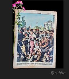 La Domenica del Corriere 1 luglio 1956 Anno 58, Numero 27 Corriere della Sera , Milano, 1956 Rivista originale e completa, in lingua italiana. Copertina morbida. Copertina illustrata (fronte): Sagra dell’aeronautica all’aeroporto di Fiumicino (Roma) per mostrare i progressi dell’aviazione italiana negli ultimi 50 anni. Presenti pattuglie acrobatiche italiane e straniere, con velivoli storici e moderni, dal Farman ai supersonici F86-K costruiti in Italia. (Disegno W. Molino) Copertina illustrata (retro): Arrembaggio a Gina Lollobrigida durante una festa di beneficenza nei giardini delle Tuileries a Parigi. All'annuncio del suo arrivo, una folla enorme si è riversata su di lei. Cento gendarmi sono intervenuti per proteggerla. Nel caos, quattro feriti. (Disegno W. Molino) Condizioni: Ottime, con pagine un po’ ingiallite dal tempo. Le pagine potrebbero presentare piccoli strappi e macchie dovute all'uso e alla conservazione nel tempo. Sono presenti alcune annotazioni a penna, che tuttavia non compromettono la lettura (come da foto) In questo numero: Addio Fraka Willian Friese-Greene: derubato dell’invenzione del cinematografo Droodles Giovanna Ralli Stazione di Milano: ha compiuto 25 anni Il mistero di Edgar Allan Poe ed altro ancora! I fiori visibili in foto sono decorativi e non inclusi nella vendita. Prima di procedere con l'acquisto, vi chiedo gentilmente di inviarmi un messaggio. Potrei essere in ferie e non riuscire a rispettare i tempi di spedizione. Nel mio profilo trovate molte altre riviste storiche disponibili. Per ulteriori informazioni contattateci. Domenica del Corriere, rivista storica originale con copertine illustrate da Molino, De Gasperi e Beltrame. Supplemento settimanale del Corriere della Sera, con pagine vintage di cronaca, arte e cultura. Perfetta per collezionisti e amanti del vintage. Un regalo ideale per anniversari, matrimoni o compleanni, per riscoprire la storia attraverso edizioni originali.