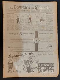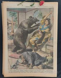 La Domenica del Corriere Anno 55 Nr.44 del 1° novembre 1953 Supplemento settimanale illustrato del nuovo CORRIERE DELLA SERA Testo in lingua italiana, copertina morbida. Rivista originale completa, presenti sovra copertine Pagina illustrata davanti. L'incidente a Gino Bartali. Sulla strada Milano-Como una automobile, in cui era il popolarissimo campione del ciclismo italiano, è stata investita da un'altra macchina che proveniva da una via traversale. Per l'urto la prima vettura si è rovesciata compiendo tre giri su sé stessa e Bartali, proiettato sulla strada per l'apertura di una portiera, ha riportato gravi ferite, che lo costringeranno ad abbandonare le corse per un lungo periodo. (Dis. di W. Molino) Pagina illustrata dietro. Un ospite invadente. A Uozu (Giappone) un grosso orso dal peso di circa due quintali si è messo a gironzolare per le strade in atteggiamento minaccioso. Affrontato dai pompieri, ne ha ferito uno e quindi è penetrato in varie case aggredendo gli abitanti, devastando le stanze e vuotando le dispense. Undici persone sono state trasportate all'ospedale gravemente ferite. L'orso ribelle è stato alla fine abbattuto da un poliziotto. (Dis. di W. Molino) Nella rivista: Quando Trieste era sotto l’Austria Racconti celebri - il Gatto Nero Il pane per il nuovo anno – un interessante confronto fra l’Italia e gli altri paesi Campi concentramento – ceneri al vento, misere croci Più che medici furono maghi. Perché è bello o brutto Picasso Sport – Uomini e donne da 300 all’ora per il 1954 Condizioni: Buone, con pagine un po’ ingiallite dal tempo. Le pagine potrebbero presentare piccoli strappi e macchie dovute all'uso e alla conservazione nel tempo. Sono presenti alcune annotazioni matita e a penna, che tuttavia non compromettono la lettura. (come da foto) La spedizione della rivista verrà gestita con la massima priorità per garantirne l'invio nel minor tempo possibile. Prezzo trattabile La rosa visibile in foto è un elemento decorativo.