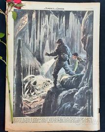 La spelonca dei mostri. In comune di Toirano, sulle pendici meridionali delle Alpi Marittime, un gruppo di giovani ha scoperto una grotta di meravigliosa anche se orrida bellezza, lunga settecento metri, e alta una ventina, con fantastiche architetture di stalattiti e stalagmiti. Nella prima affrettata ricognizione gli scopritori hanno detto di avere avvistato qua e là, affioranti dal terreno, numerose ossa di giganteschi animali preistorici.. (Disegno di Walter Molino)