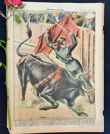La studentessa torero. Patricia Mc Cormick ha abbandonato l'Università del Texas dove studiava arte, per dedicarsi ai combattimenti di tori. Dinanzi ai severissimi intenditori di Juarez nel Messico, Patricia ha ora ottenuto un vero trionfo per l'arte e il sangue freddo con cui ha affrontato due ferocissimi tori, abbattendoli con un sol colpo di spada ciascuno secondo la tradizione dei più celebrati matadores. A lei in premio le orecchie e la coda. (Disegno di Walter Molino)