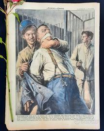 Evasi dalla cella della morte. Ad Amiens, due omicidi condannati alla ghigliottina sono riusciti a fuggire dalla prigione facendosi consegnare da due guardiani, con la minaccia di una pistola scarica, le chiavi, le uniformi e le armi e rinchiudendoli nella propria cella. Sono stati però catturati dai gendarmi il mattino successivo in una piccola stazione ferroviaria a soli venti chilometri di distanza dopo un incruento duello a rivoltellate. (Disegno di Walter Molino)