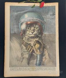 Il micio ultrasonico. Alley Cat Zero gattino soriano, mascotte di una squadriglia da caccia dislocata presso Chicago, ha superato in volo la barriera del suono, a bordo dell'apparecchio del comandante del reparto. Il micio era munito dell'elmetto per piloti di aerei a reazione e durante la prova si è portato benissimo. Allungato beatamente sul cruscotto ha dormicchiato quasi sempre. All'arrivo si è mostrato meravigliato e seccato per le feste che gli facevano. (Disegno di G. De Gaspari)