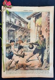 Il pallone assassino. Il settantenne Ferdinando Salvalaio che aveva lasciato un fucile da caccia carico nel cortile della sua casa colonica a Salzano (Venezia) dove un gruppo di giovani stava giocando al calcio, mando un suo nipotino a prenderlo. Il ragazzo aveva appena sollevata la doppietta quando una violenta pallonata lo colpi e, per l'urto, le due cartucce esplosero, investendo il tredicenne Luigi Povellato che rimase ucciso. (Disegno di W. Molino)