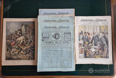 Vendo lotto storico di 78 numeri de La Domenica del Corriere (1911–1914) con le celebri copertine di Achille Beltrame: uno spaccato dell’Italia e del mondo alla vigilia della Grande Guerra.