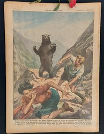 Brutti incontri in montagna. Sui Monti Lessini sopra la Valle dei Ronchi nel Trentino ha dato recenti segni di sé un grosso orso bruno che ha fatto strage fra le greggi e che e più di una volta apparso a villeggianti in escursione senza però far loro altro danno che la tremenda paura. (Disegno di W. Molino)