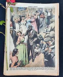 La Domenica del Corriere Anno 54 Nr.44 del 2 novembre 1952 Supplemento settimanale illustrato del nuovo CORRIERE DELLA SERA Testo in lingua italiana, copertina morbida. Rivista originale completa, presenti sovra copertine Pagina illustrata davanti. Lo Zio Sam nell'imbarazzo. Eisenhower o Stevenson? Repubblicano o democratico? A chi affidare la Casa Bianca? Il 4 novembre avranno luogo negli Stati Uniti le elezioni presidenziali. Leggere a pagina 6 un particolareggiato servizio sulle figure e sulle probabilità dei due candidati al governo della Nazione più potente del mondo. (Disegno di W. Molino) Pagina illustrata dietro. Mani in alto alla soirée. Cinque banditi armati di carabine, fucili da caccia e pistole sono penetrati nella villa dell'architetto Francis Warfielrux a Nashville nel Tennessee (Stati Uniti) durante una grande festa danzante ed hanno rapinato tutti i presenti di denaro e gioielli per circa cento milioni di lire. Quindi sono fuggiti in automobile. (Disegno di W. Molino) Nella rivista: Ricordo di Sabatino Lopez Chi sarà il nuovo presidente - Eisenhower o Stevenson Come dovrebbe essere la moglie Anche voi superstiziosi? La febbre in fondo è nostra amica Succhieremo l’energia dalle viscere del Vesuvio Il 4 novembre della vittoria Condizioni: Buone, con pagine un po’ ingiallite dal tempo. Le pagine potrebbero presentare macchioline e piccoli strappi dovuti all'uso e alla conservazione nel tempo. Sono presenti alcune annotazioni a penna e il cruciverba compilato nella pagina dedicata ai giochi e passatempi, che tuttavia non compromettono la lettura. Spedizione: La spedizione della rivista verrà gestita con la massima priorità per garantirne l'invio nel minor tempo possibile. Prezzo trattabile Le iconiche copertine de La Domenica del Corriere non solo raccontano la storia, ma diventano splendidi pezzi d'arte quando incorniciate. Aggiungi un tocco vintage e raffinato ai tuoi ambienti con queste illustrazioni senza tempo! Rosa non inclusa