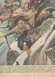 Copertina illustrata (fronte): Tragedia alpinistica in Valpelline: quattro turisti svizzeri sulla sessantina, dopo aver attraversato il Colle del Monte Collon, smarriscono la pista sul ghiacciaio e si spostano sulle rocce. Uno di loro, l'alienista Bersot, cercando appigli in un colatoio, si aggrappa a un masso che si stacca, facendolo precipitare per 200 metri sul ghiaione sottostante. (Disegno R. Ferrari)