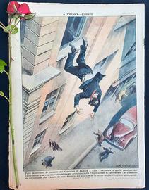 Fatti misteriosi. Il cassiere del Consolato di Polonia a Lilla - chiamato a quelle funzioni dal viceconsole, che era stato recentemente arrestato sotto l'imputazione di spionaggio - si è buttato in circostanze non chiare da una finestra del suo ufficio al terzo piano, ferendosi gravemente. (Disegno di Walter Molino)