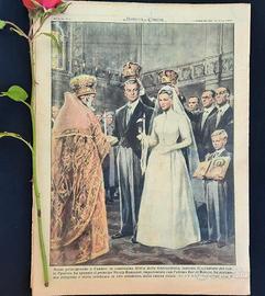 Nozze principesche a Cannes, la contessina Sveva della Gherardesca, lontana discendente del conte Ugolino, ha sposato il principe Nicola Romanov, imparentato con l'ultimo Zar di Russia. La cerimonia religiosa è stata celebrata in rito ortodosso, nella chiesa russa. (Disegno di Walter Molino)