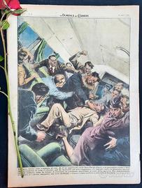 Un pazzo furioso come compagno di volo. Su di un apparecchio della linea Parigi-Algeri, a un passeggero arabo è dato improvvisamente di volta il cervello; egli ha insolentito gli altri viaggiatori, si è lanciato contro la assistente che cercava di calmarlo, infine ha tentato di strozzare un giovanotto intervenuto in aiuto della ragazza. Per immobilizzare il demente si è dovuto impegnare una lotta furibonda; e l'aereo è stato costretto a atterrare a Marsiglia. (Disegno di Walter Molino)
