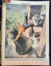La tragedia dei cinque fratelli. Alla cascina Rusmina a Chiari (Brescia) per sistemare una pompa che doveva aspirare il concime di un pozzo nero, l'agricoltore Severino Sirani vi si calo con una scaletta a pioli. Venuto egli meno per i miasmi, scese in suo soccorso il fratello Ersilio, ma anche costui svenne. La stessa sorte tocco ad altri tre fratelli, Guerino, Giuseppe e Vincenzo, che cercavano di salvare i congiunti. E tutti e cinque hanno così trovato la morte. (Disegno di Giorgio de Gaspari)