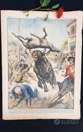 Copertina illustrata (retro): C'è andato di mezzo l'asinello: Alla fiera zootecnica di Amatrice, un toro imbizzarrito fugge, distrugge bancarelle e semina il panico. Infila con le corna un asinello, poi continua la corsa finché i carabinieri lo abbattono. (Disegno W. Molino)