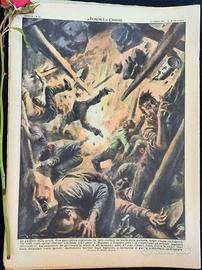 La galleria della morte. Una spaventosa esplosione ha fatto crollare un tratto della galleria, lunga cinque chilometri, che oltre cento operai stavano scavando tra i paesi di Mignano e Venafro dove é in costruzione un grande impianto idroelettrico. La catastrofe ha provocato la morte di 40 minatori, altri 47 sono rimasti feriti. Circa le cause, sono state formulate varie ipotesi, imprudenza nell'uso degli esplosivi, o fuoriuscita di gas, o addirittura sabotaggio. (Disegno di Walter Molino)