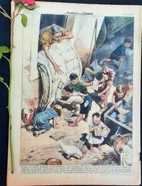 Il tesoro in libertà. A Sclemo, in Val Giudicarie, una contadina ha esposto al sole un materasso in cui aveva nascosto 500 biglietti da mille, senza notare che da un buco cominciavano a uscirne le banconote. Ma se ne sono accorti alcuni bimbi che, incuriositi dagli strani fogli, hanno continuato a estrarne, adoperandoli per i loro giochi. Finché avvertita da un passante la proprietaria è accorsa e ha potuto recuperare quasi tutti i preziosi biglietti. (Disegno di Walter Molino)