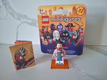 La minifigure LEGO nella foto è Peter B. Parker/Spider-Man con la piccola May "Mayday" Parker, parte della serie LEGO Minifigures Spider-Man: Across the Spider-Verse (71050).