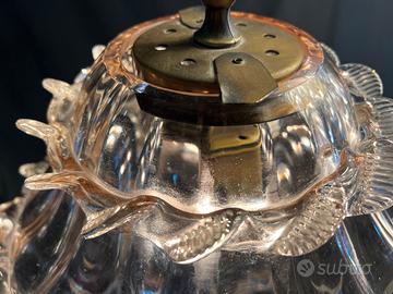 Diffusore in vetro di Murano lavorato a mano di colore rosa cipria trasparente, struttura e catena in ottone.