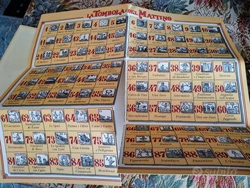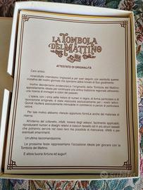 Gioco risalente al 1989, completo, mai utilizzato. Scatola di cartone contenente tabellone, 62 grandi tabelle sul cui retro sono raffigurati antichi mestieri, numeri di legno ed alcuni numeri di riserva nonché adesivi da applicare sulle tesserine dei numeri, lettera/garanzia