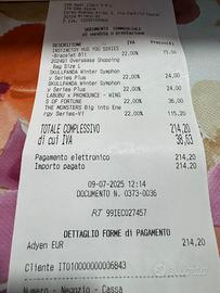 Labubu sigillata Wings of fortune comprata nel negozio Pop Mart a Milano (foto scontrino di acquisto).