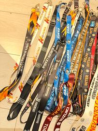 Lotti di laccetti porta badge a tema calcistico, con loghi di squadre e competizioni.