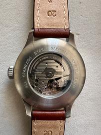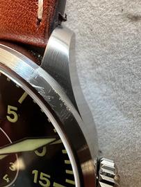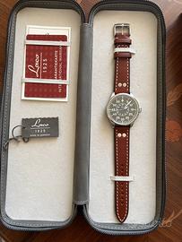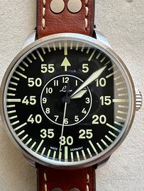 Orologio Laco modello base flieger aviator, automatico, cassa in acciaio inox 42 mm, vetro zaffiro, 5 bar, quadrante tipo B. Movimento base Miyota 82S0 con funzione di fermo macchina. Scatole e contro scatola. Acquistato alla fine di marzo 2025. Indossato due volte! Piccoli graffii impercettibili ad occhio nudo tra i 5 e i 10 minuti, per appoggio inconsapevole su muretto il primo giorno che l’ho indossato. Le foto sono macro molto ravvicinate che per onestà individuano bele i graffi. Problema risolvibile con piccola lucidatura. Orologio perfettamente funzionante. Vendo perché non mi è scattato il feeling e per acquisto altro orologio. Come al solito, solo veramente interessati, no affaristi, non scambio, non faccio altre mille foto per curiosi senza interesse. Cortesia, richiede cortesia. Grazie per aver letto l’annuncio.
