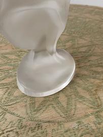 Raffinata scultura “donna nel vento” risalente agli anni ‘30 raffigurante una figura femminile in posa elegante. Realizzata in cristallo boemo satinato/vetro pressato satinato, con una bellissima finitura opaca "effetto ghiaccio" che cattura la luce. • Condizione: buona; presenta lievi segni del tempo visibili in foto (piccoli aloni scuri e superficiali su schiena e gonna, e una leggera imperfezione sul bordo della gonna) • Designer/Produttore: progettata da Ida Schwetz-Lehman e prodotta da Curt Schlevogt (linea Ingrid), Cecoslovacchia • Stile: Art Déco • Dimensioni: 22x8cm