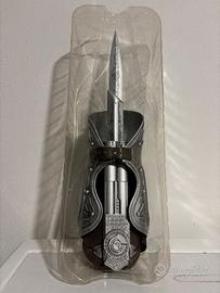 Vendo rara replica ufficiale della Lama Celata di Ezio Auditore (Assassin's Creed Brotherhood) prodotta da NECA. Pezzo da collezione originale del 2012, fuori produzione e molto difficile da reperire in queste condizioni. • CONDIZIONI: Eccellenti. Il meccanismo a molla è perfettamente funzionante e scattante. I cinturini sono integri e flessibili (no crepe). • PACKAGING: Presente la scatola originale con lievi segni di usura solo sugli angoli. Internamente la confezione è perfetta e include ancora tutte le plastiche protettive originali. • DETTAGLI: Oggetto sempre conservato al riparo da polvere e luce. Ideale per collezionisti o cosplayer di alto livello.