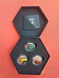 vendo trittico lamborghini in argento composto da 3 monete da 5 euro a colori nel loro cofanetto, da esposizione, coniate 5 maggio 2025 dalla zecca dello stato italiano.