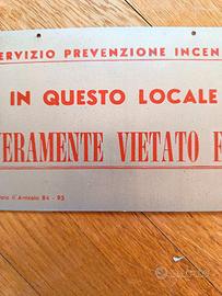 Lamierino vintage "in questo locale è severamente vietato fumare" in ottime condizioni. Misure 20*10