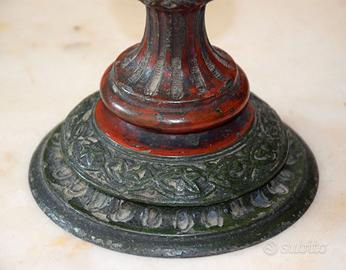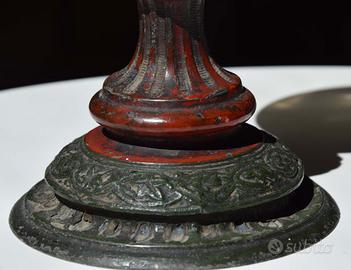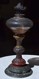 Bella lampada a canfino da tavolo, di fine 1800 in metallo con decorazione floreale. Oggetto ben tenuto, integro, originale, per collezionisti.