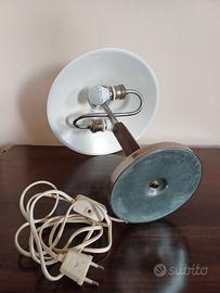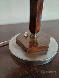 Lampada a fungo vintage in legno e metallo, anni 50, caratteristico colore della cupola bianco di metallo, stelo di metallo con copertura in legno, base in legno e metallo a doppia lampadina, l'interruttore alla base non funziona ma è fornita di interruttore sul filo, funzionante, non presenta danni visibili ma evidenti segni del tempo, altezza cm. 40, diametro base cm. 17 diametro cono cm. 29, consegna a mano zona Parma, su richiesta si effettuano spedizioni, per visionare altre lampade antiche o vintage cliccare sul mio profilo.