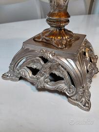 Base Monumentale: Splendida base quadrangolare in metallo fuso (peltro o zama argentata) decorata con aquile ad ali spiegate agli angoli, simbolo di potere ed eleganza tipico dello stile Impero.