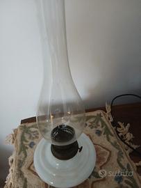 antica lampada a petrolio vetro opalino anni inizi 900 altezza 38cm