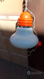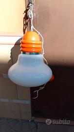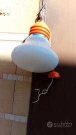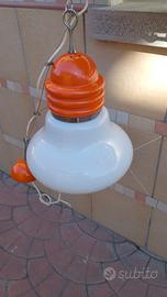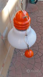 Lampada a sospensione dal design moderno, perfetta per illuminare ogni ambiente. -Forma di una lampadina Gigante diffusore in vetro satinato Design:Piero Brombin per Artemide 1965 - Struttura in alluminio arancione. - Diffusore in vetro bianco. - Stile unico e accattivante.