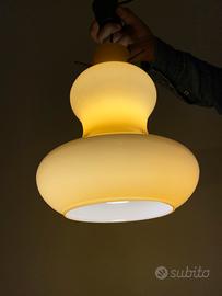 Bellissima lampada a sospensione in vetro color arancio disegnata da Massimo Vignelli per Vistosi negli anni ‘60. Perfetta, integra e funzionante.