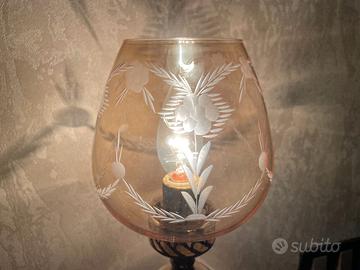 LAMPADA CON BASE IN ARGENTO E COPRILAMPADA IN VETRO AMBRATO DECORATO