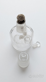 Lampada ad alcool in vetro, piccola e vintage, ideale come oggetto da collezione, da esposizione o per laboratorio/scopi decorativi. Realizzata interamente in vetro trasparente, con stoppino interno e tappo incluso. Ha un design semplice e particolare, molto bello anche come oggetto d’arredo curioso o da collezione scientifica/vintage. Diametro circa 6 cm, altezza totale circa 9 cm. Perfetta per collezionisti, appassionati di strumenti da laboratorio d’epoca, curiosità scientifiche o oggetti in vetro particolari. Condizioni ottime come da foto.
