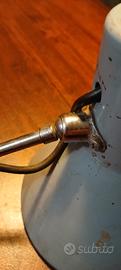 Lampada industruale da banco d'oreficeria anni 60 con braccio snodabile, perfetta per scrivania o banco da lavoro. Il design industriale si adatta a diversi ambienti.