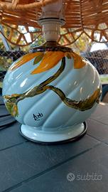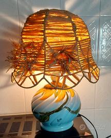 Il corpo della lampada è in ceramica decorata a mano con motivi floreali, che ne esaltano lo stile rustico e naturale, ideale per ambienti dallo stile country, boho o shabby chic.